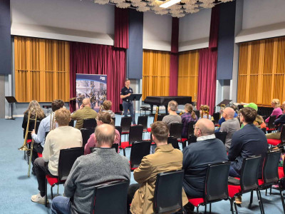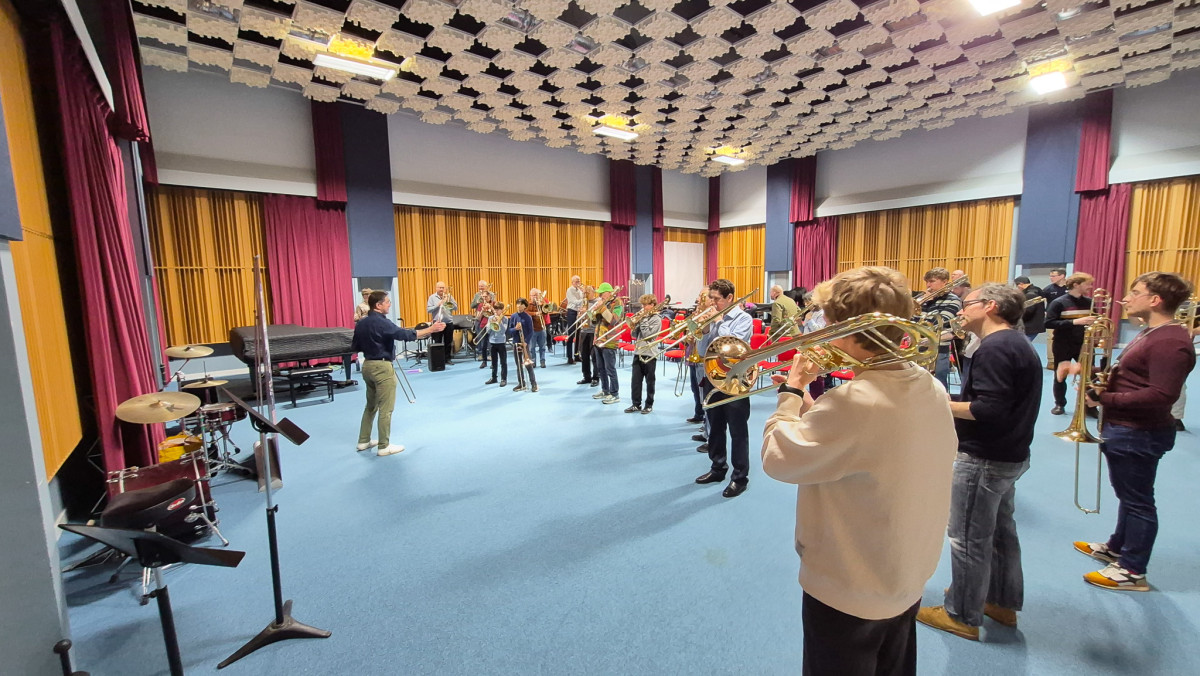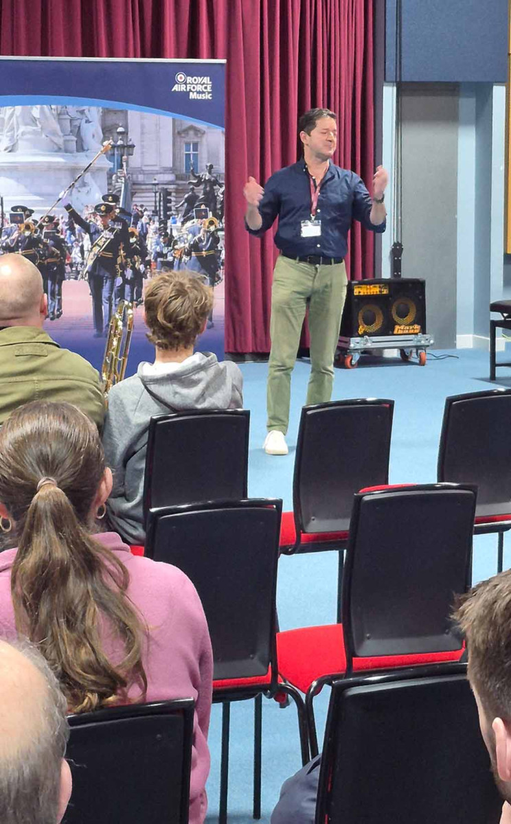 Participants enjoyed a warm-up led by BTS President Tom Lees, exploring performing vocal music with Emily White, and a recital by the Royal College of Music Trombone Ensemble conducted by Byron Fulcher, who also led the traditional trombone choir. The day concluded with a concert by the amazing RAF Squadronaires and guest artist Rory Ingham, who had earlier led an entertaining improvisation workshop.