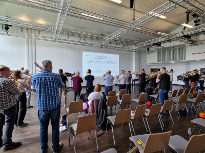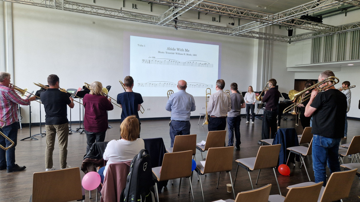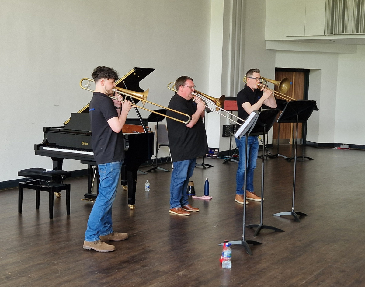 Trombone section of the Carlton Main Frickley Colliery Band: